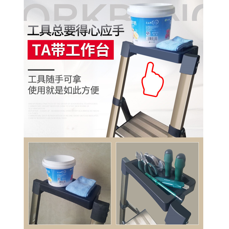 万怡2691A-V 出口梯德国品质折叠家用梯铝合金梯子人字航空铝合金梯 6步(60CM高扶手带工具台)