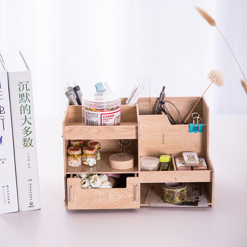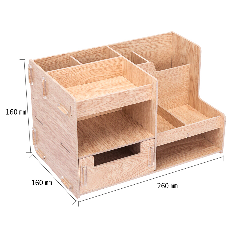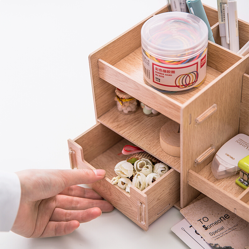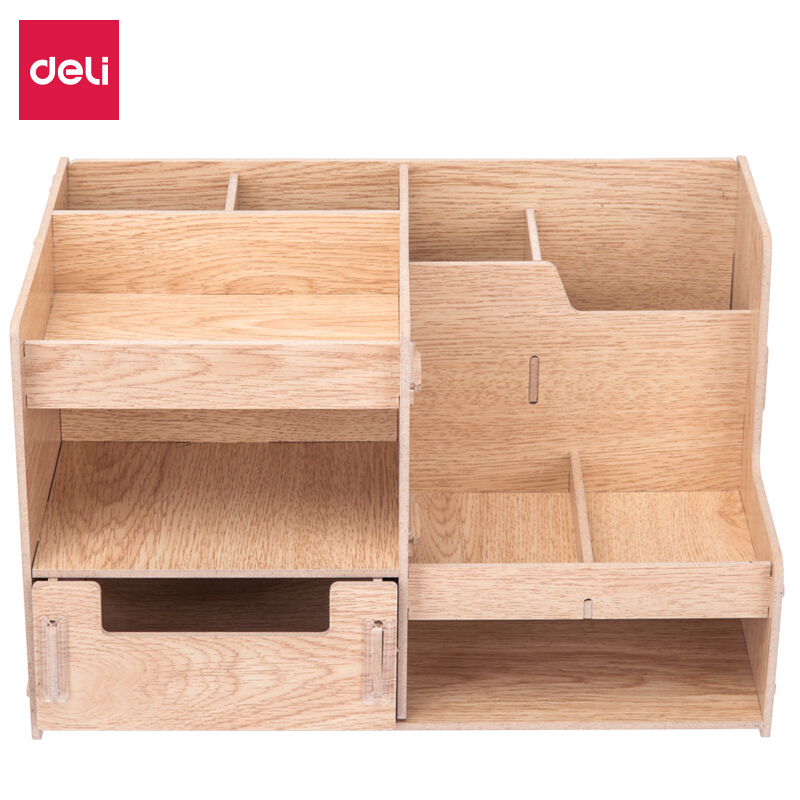 得力(deli)木制DIY创意多层组合收纳盒 多功能桌面收纳座/文件框/文件架 原木色