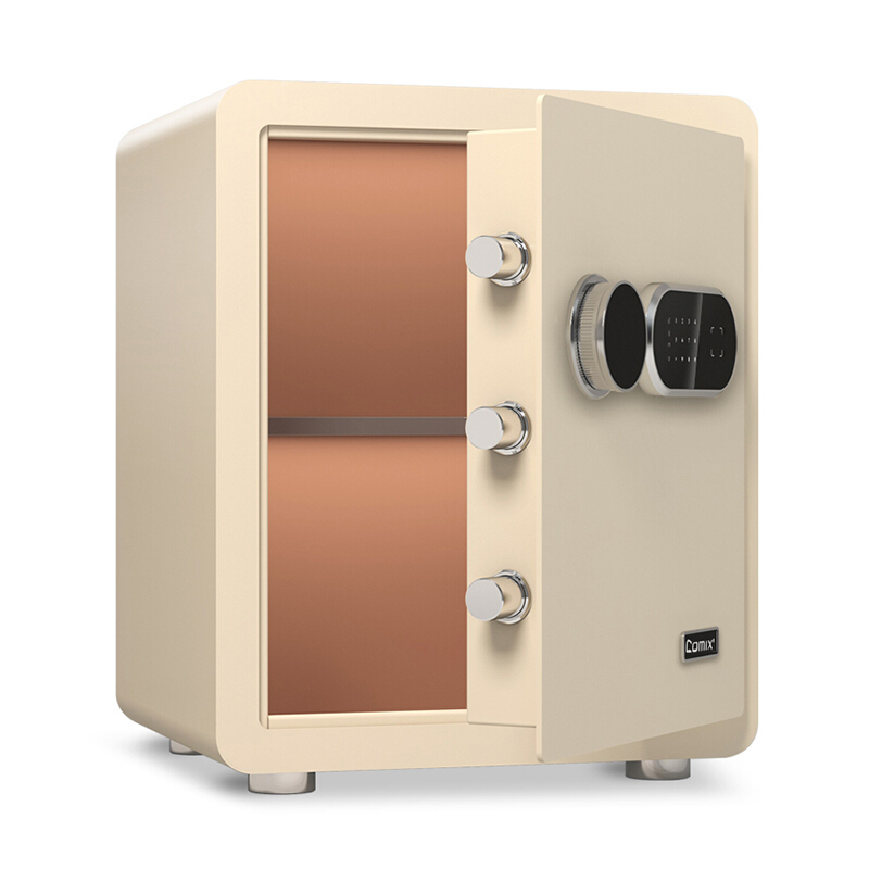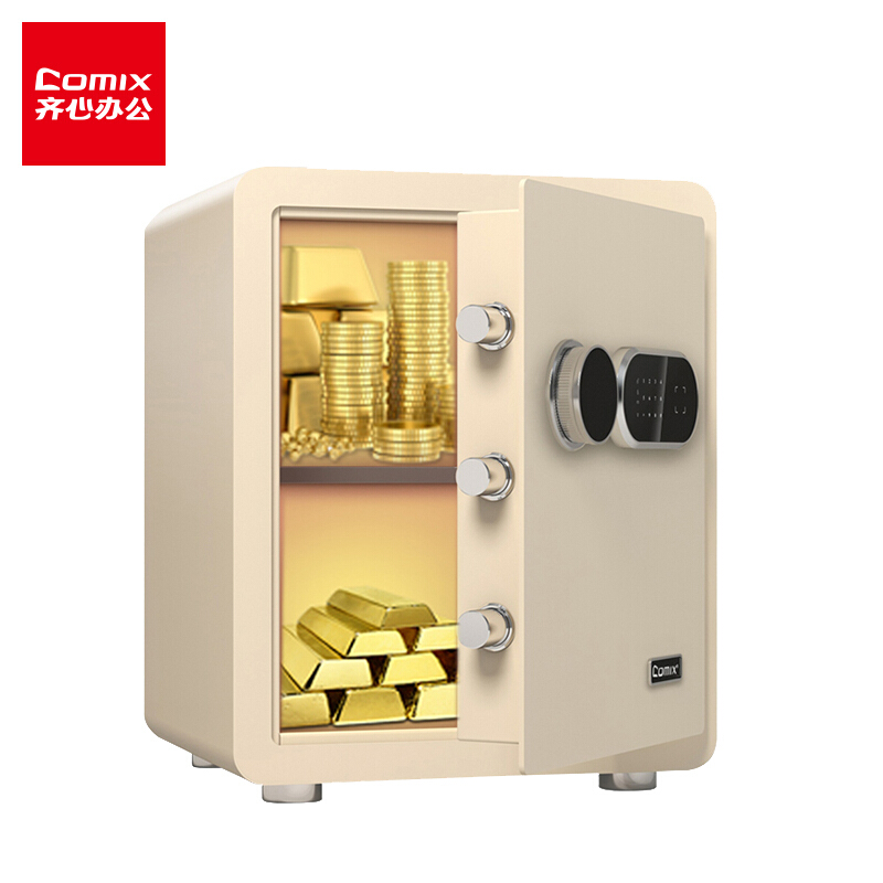 齐心(Comix)BGX-MD-45ZW1保险柜 高45cm全钢防盗指纹密码保险箱保管箱 办公家用防盗保管柜米黄色