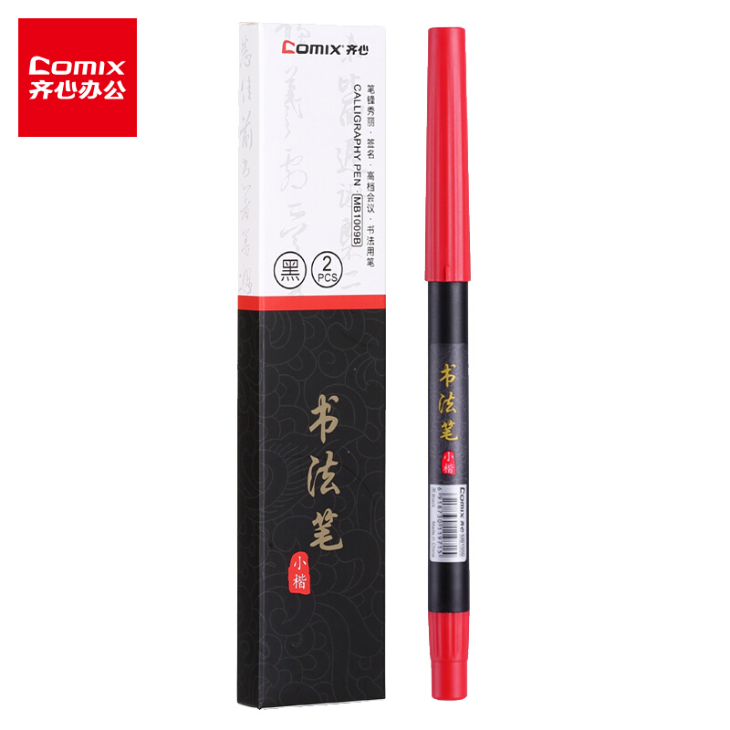 齐心(Comix) MB1009B 小楷书法笔秀丽书法软毛笔练字笔 2支/盒 黑色