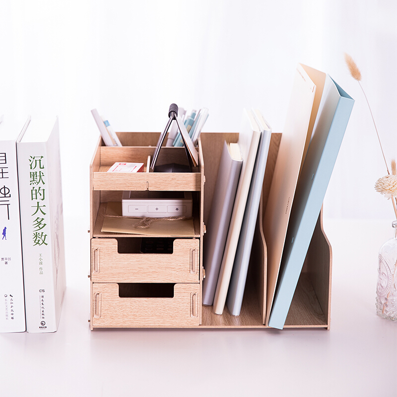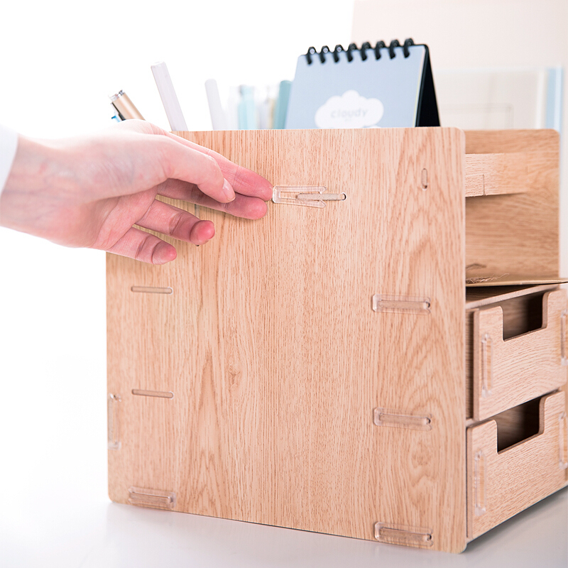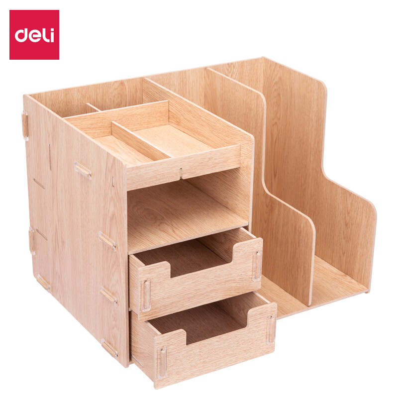 • 得力79252 两联多功能组合桌面文件框 木制DIY创意拼装文件栏/收纳盒 原木色