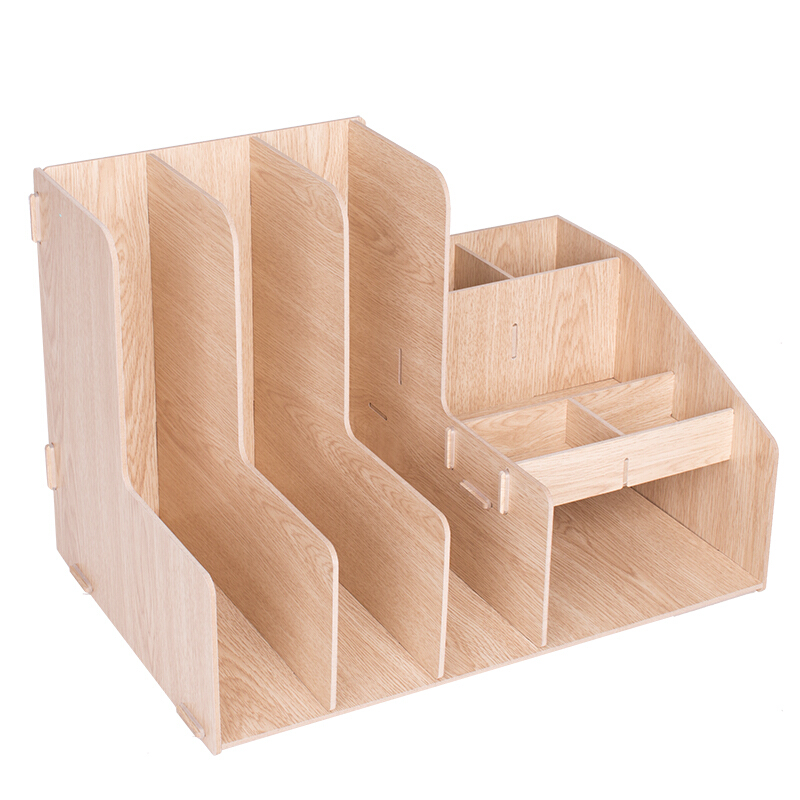 • 得力79251 三联多功能组合桌面文件框 木制DIY创意拼装文件栏/收纳盒 原木色