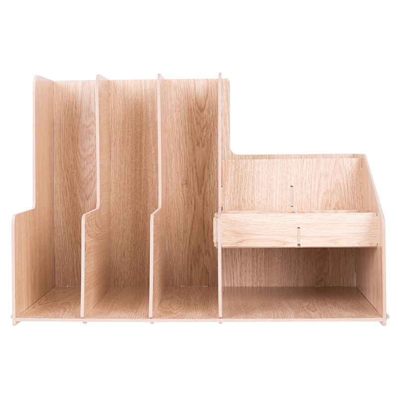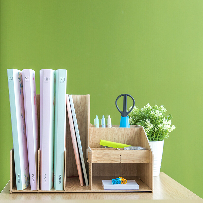 得力(deli)三联多功能组合桌面文件框 木制DIY创意拼装文件栏/收纳盒 原木色
