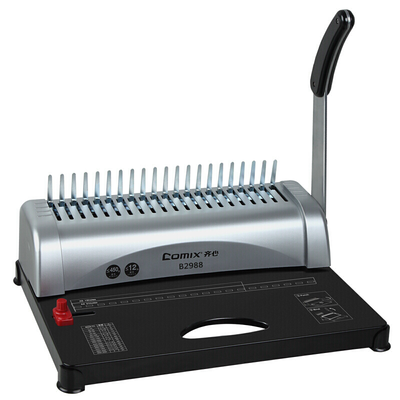 齐心(Comix)B2988 凭证装订机 省力胶圈打孔机/21孔 文本/招标书财务装订机打孔 黑银色