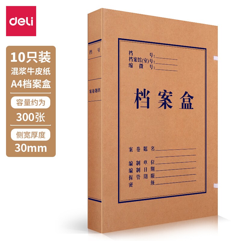 • 得力5920 高质感牛皮纸档案盒 党建资料盒10只30mm 加厚文件收纳盒 财务凭证盒