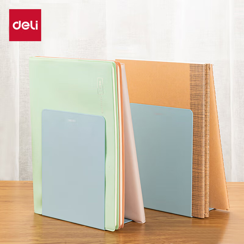 • 得力(deli)18cm高简约金属桌面桌面书立 桌上书籍挡靠夹 2片/ 浅绿78650