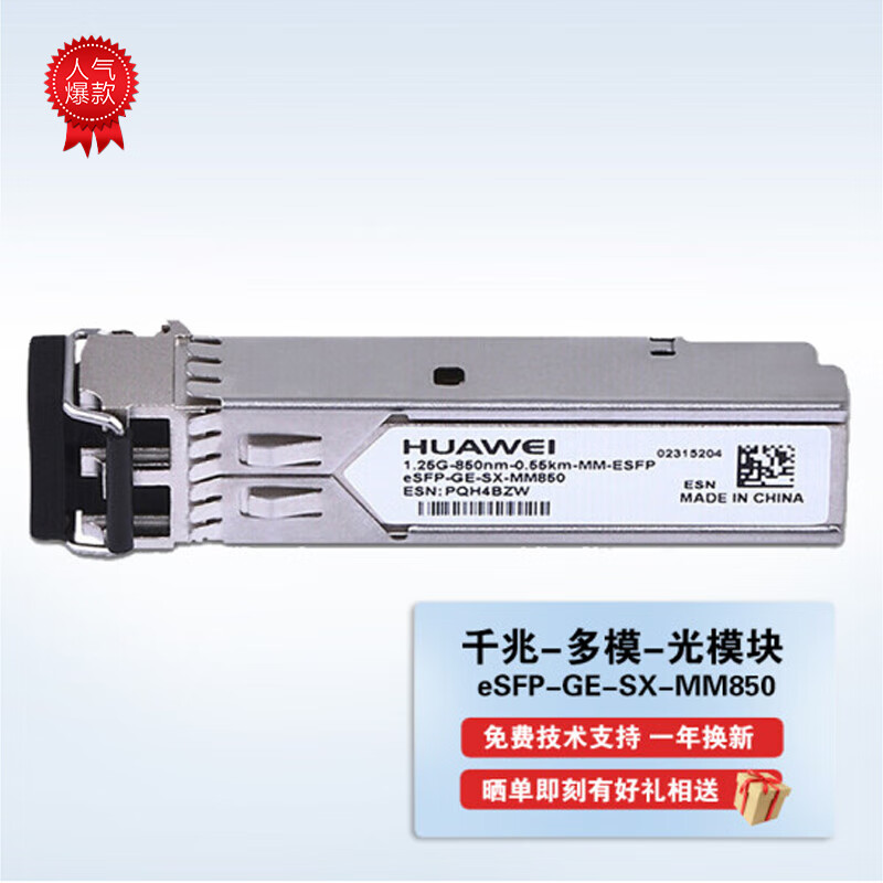 • 华为(HUAWEI)千兆多模光模块/交换机、路由器、防火墙、服务器光纤模块eSFP-GE-SX-MM850 (850nm,0.55km,LC)