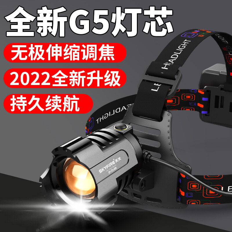 • 天火(SkyFire)头灯 强光超亮钓鱼灯超长续航可充电头戴式矿灯家用电筒大功率户外照明夜钓灯9000毫安SF-398