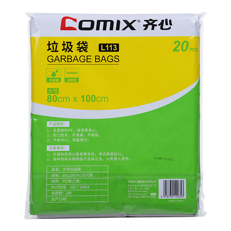 齐心L113 垃圾袋80*100cmm 20个装 黑色