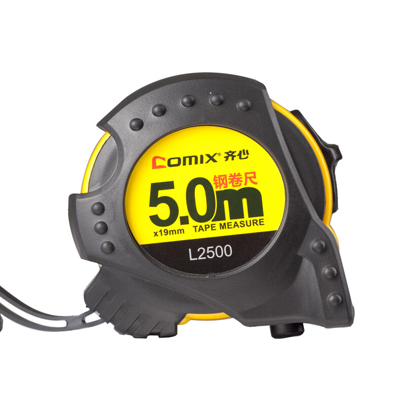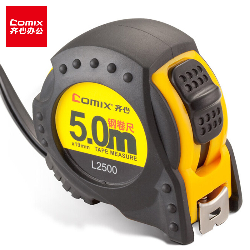 • 齐心(Comix) L2500 5m全包胶带锁定钢卷尺 公英双制测量尺子 黑