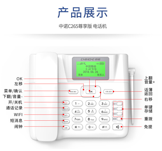 • 中诺 无线固话 插卡电话机 移动联通4G网 WIFI热点分享 TD-LTE 家用办公移动固话座机 C265尊享4G版 黑色
