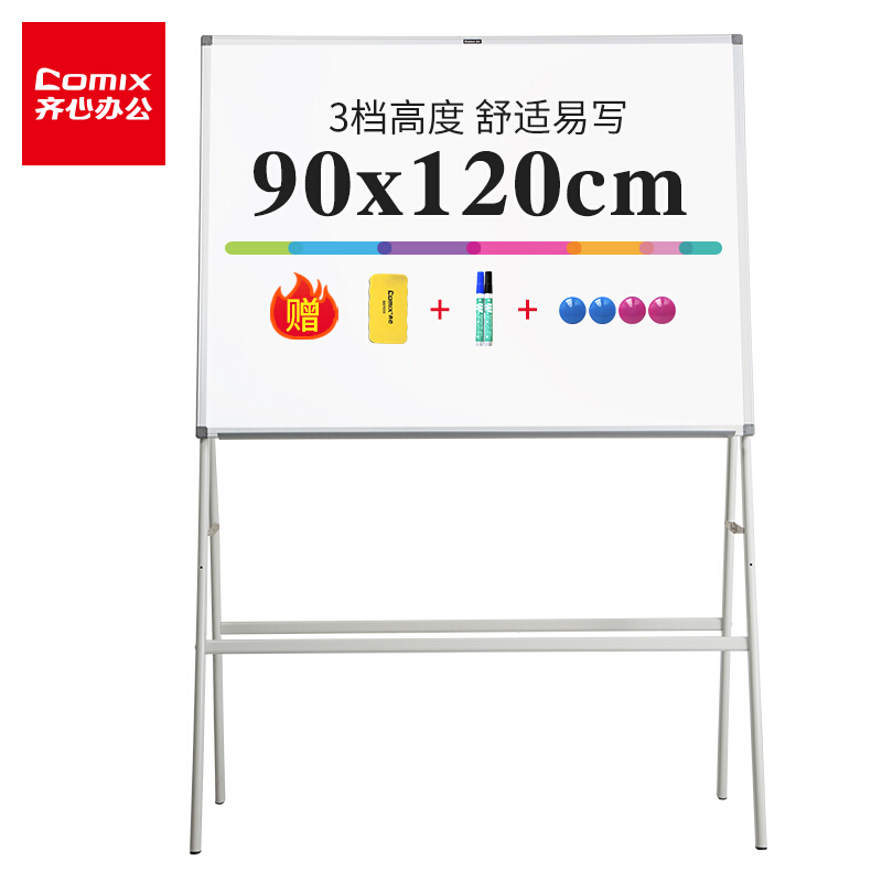 • 齐心(COMIX) 90*120cm可移动折叠A字型支架会议白板磁性办公演示板写字板高度可调节 BB7651
