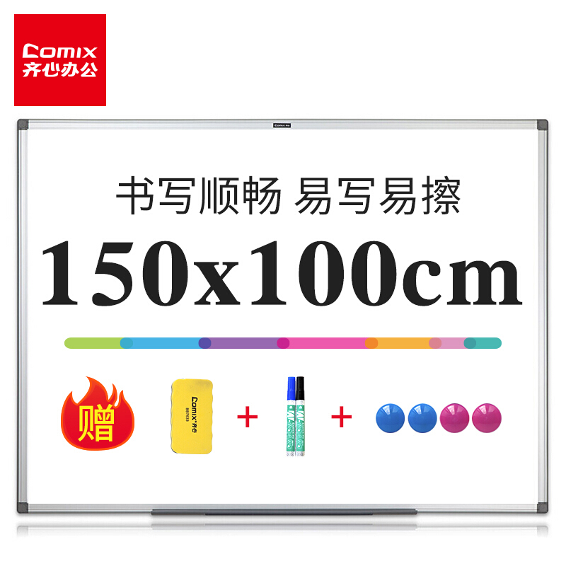 • 齐心(Comix)150*100cm易写易擦磁性办公教学挂式白板会议白板悬挂写字板展示板家用教学会议黑板 BB7628