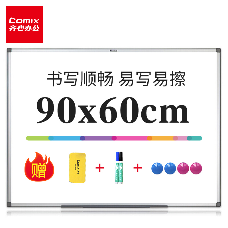 • 齐心(Comix)90*60cm易写易擦磁性办公教学挂式白板会议白板悬挂写字板展示板家用儿童画板黑板 BB7626