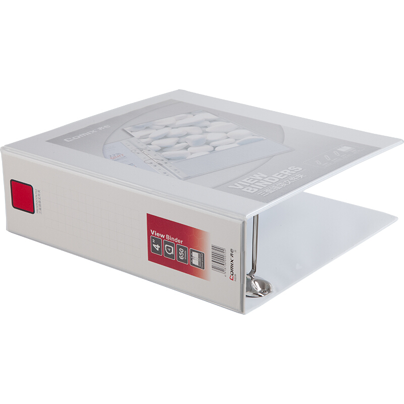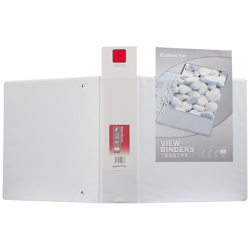 齐心(Comix) A4文件夹 易展示美式三面插袋文件册 4英寸4孔 办公用品 白 A0239