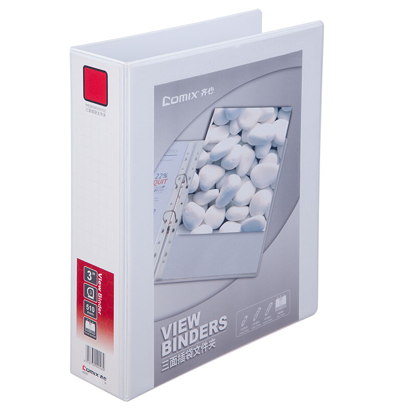 齐心(A0234 A4文件夹 易展示美式三面插袋资料册 3英寸2孔 白
