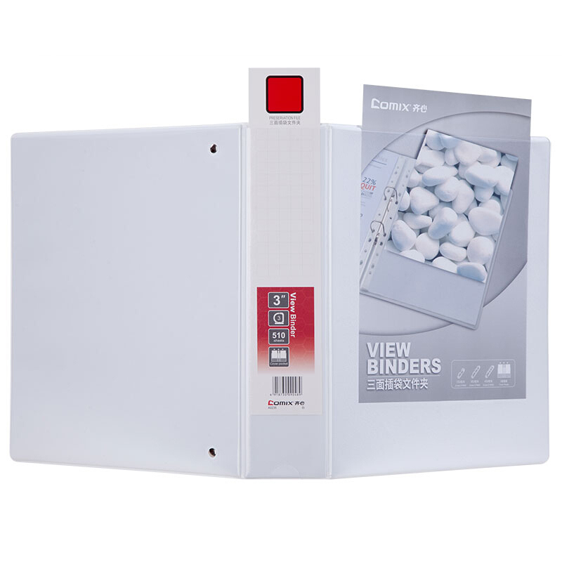 齐心(Comix)A4文件夹 易展示美式三面插袋资料册 3英寸2孔 办公用品 白 A0234