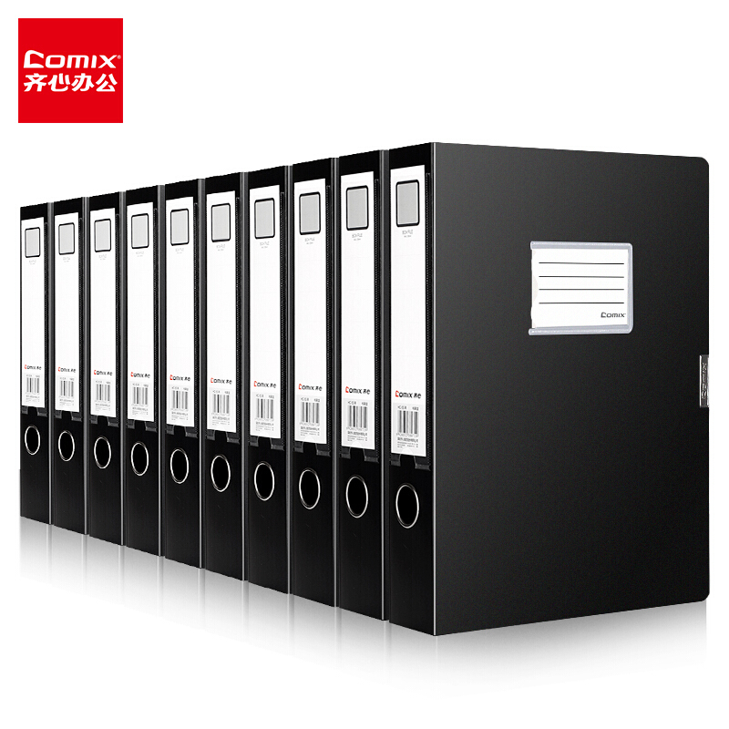 齐心(Comix) 10个装 75mm档案盒 加厚耐用型粘扣文件盒 A4资料盒 黑色 HC-75-10