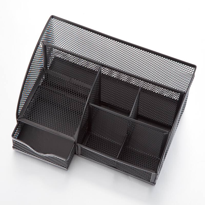 • 齐心(Comix)B2000 创意金属网纹办公笔筒 多功能七格桌面收纳摆件 黑色