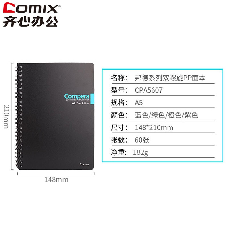 • 齐心 CPA5607 Compera双螺旋PP面本A5 60页