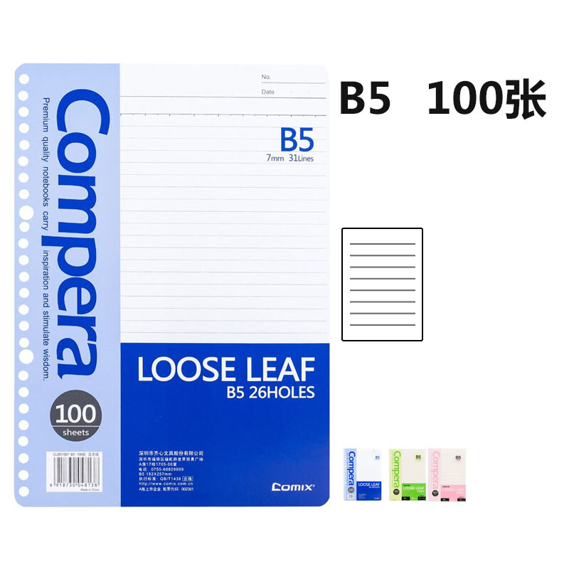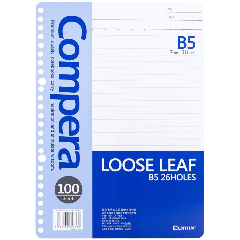 齐心 CLB51007 Compera26孔活页替芯B5 100页 蓝