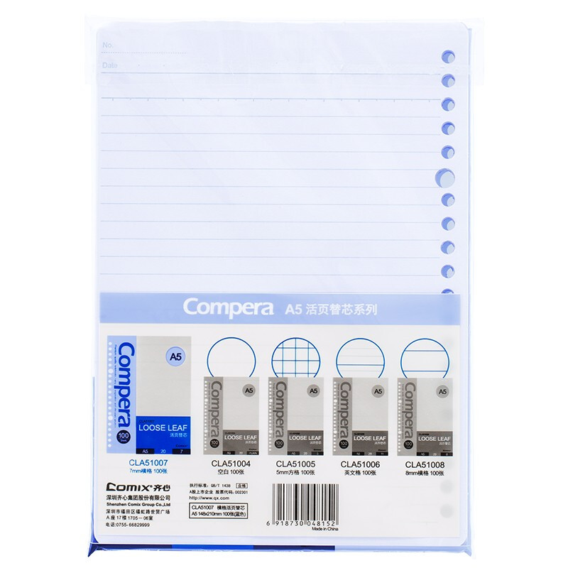 齐心 CLA51007 Compera20孔活页替芯A5 100页 蓝