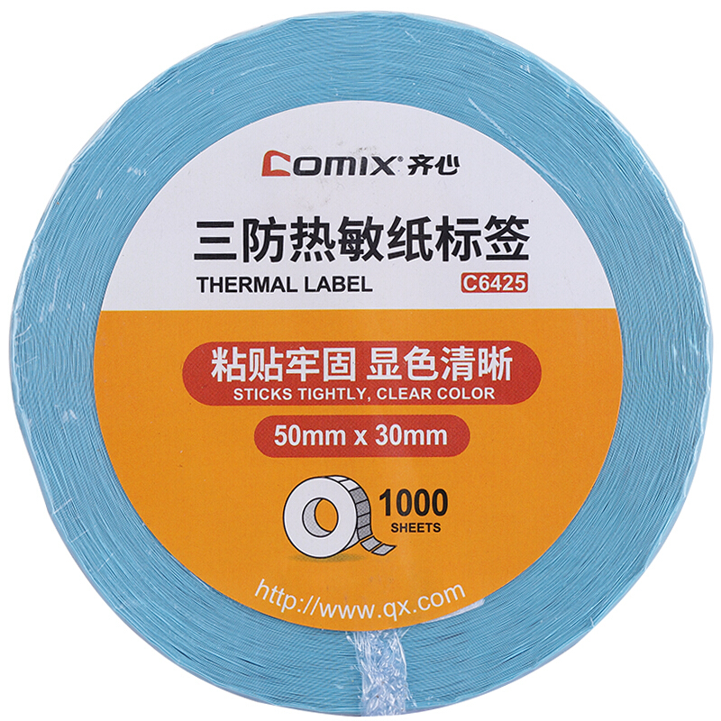 齐心(Comix) C6425 50*30mm 1000张/单卷 热敏三防打印不干胶纸 适用于超市、药店、服装店、奶茶店