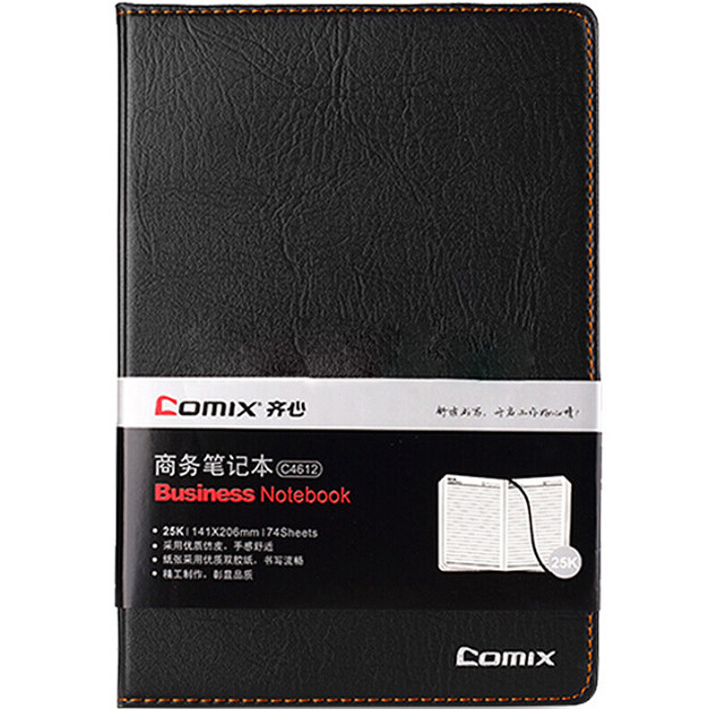 齐心C4612 简约系列PU笔记本 A5 74页 黑色