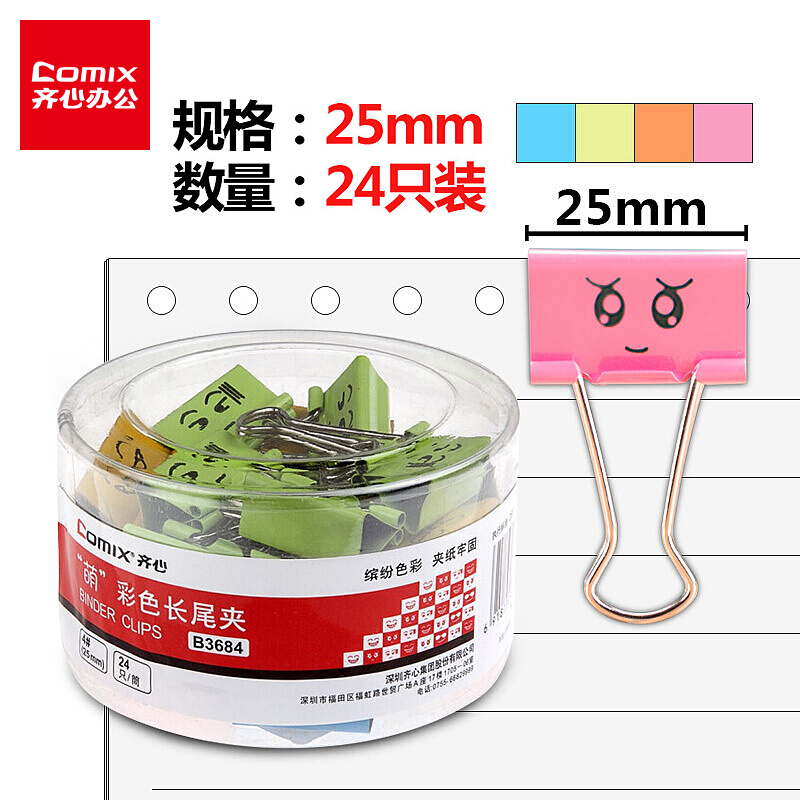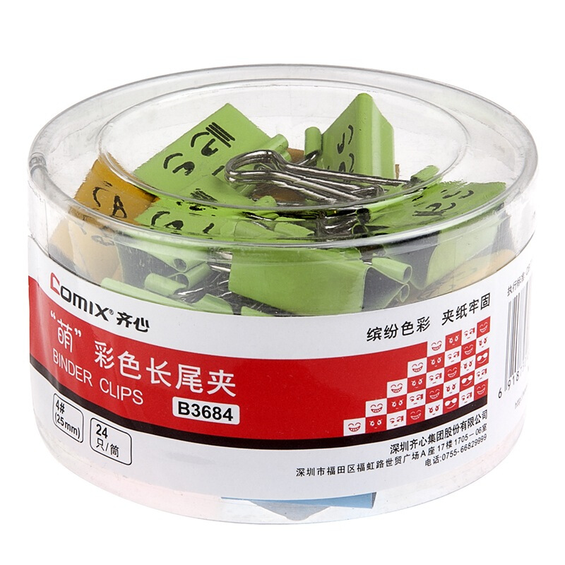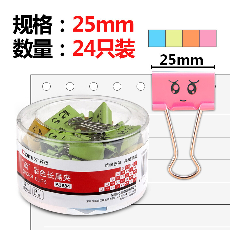 • 齐心B3684 萌彩色长尾票夹 4号
