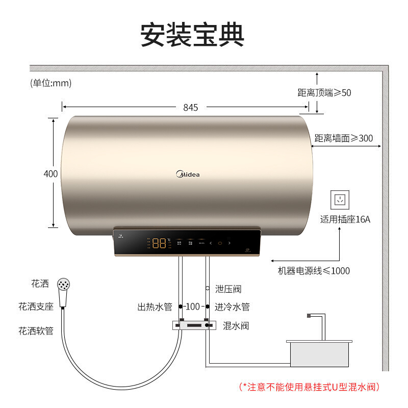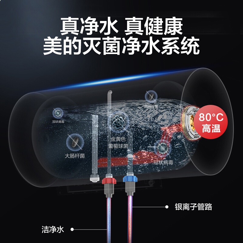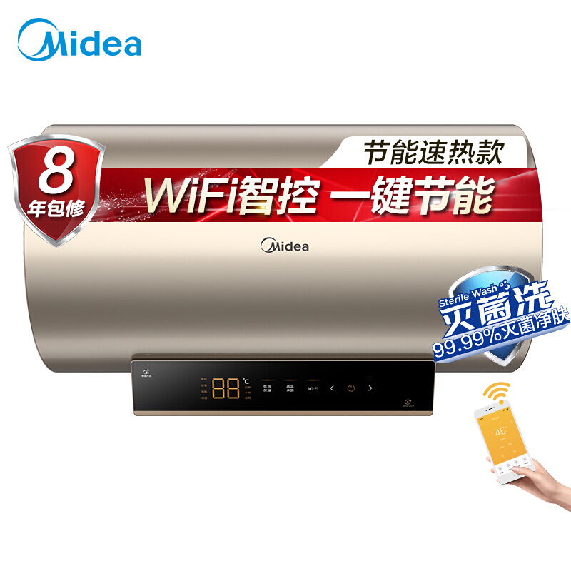 • 美的(Midea)60升电热水器2200W速热健康洗 安全防漏电一级节能低耗保温APP控制 F6022-J7(HE)