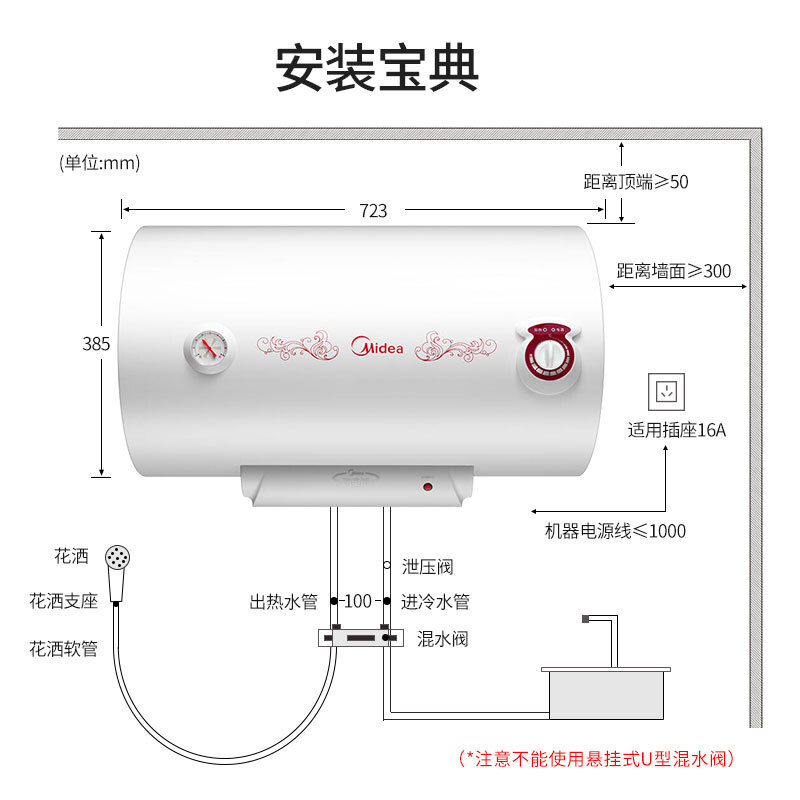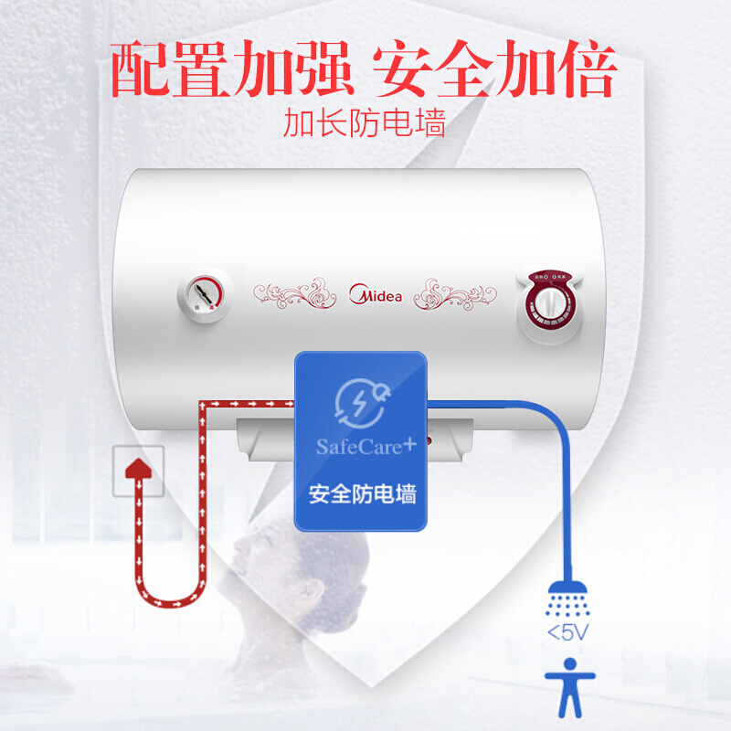 • 美的(Midea)2100W大功率电热水器50升 节能保温型 加长防电墙 蓝钻内胆8年包修F50-21WA1