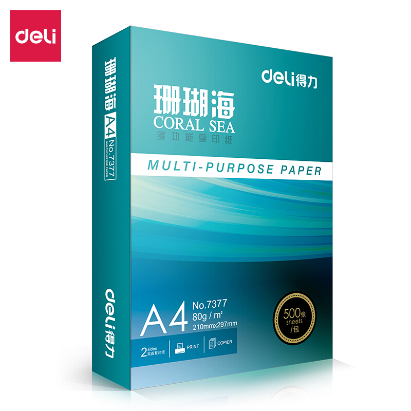 得力(deli)珊瑚海1包装80gA4复印纸 单包 500张/包
