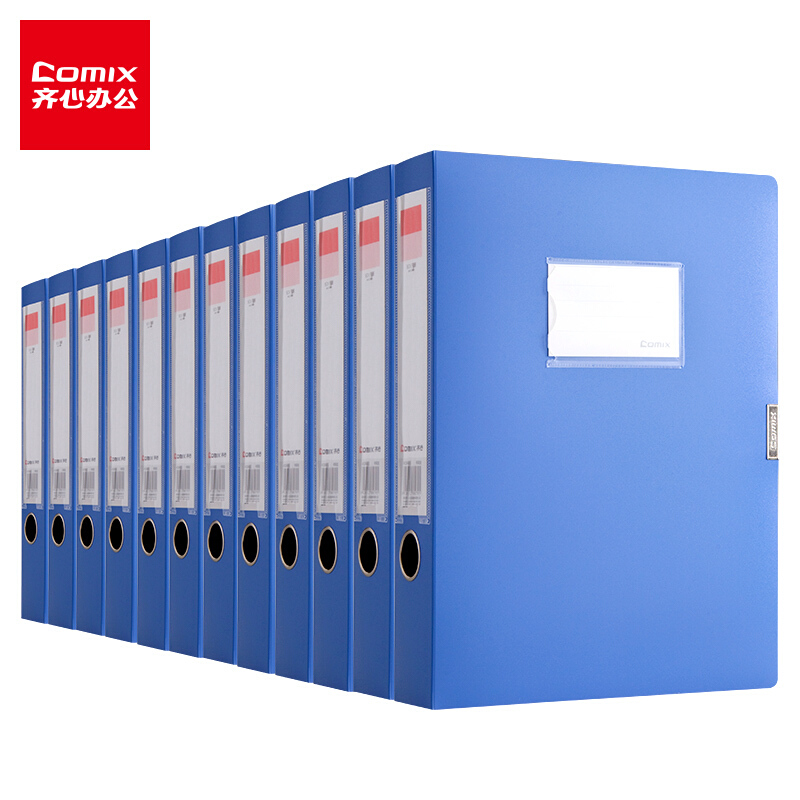 齐心(Comix) 55mm加厚档案盒/A4文件盒/粘扣塑料资料盒 办公用品 蓝色EA4912