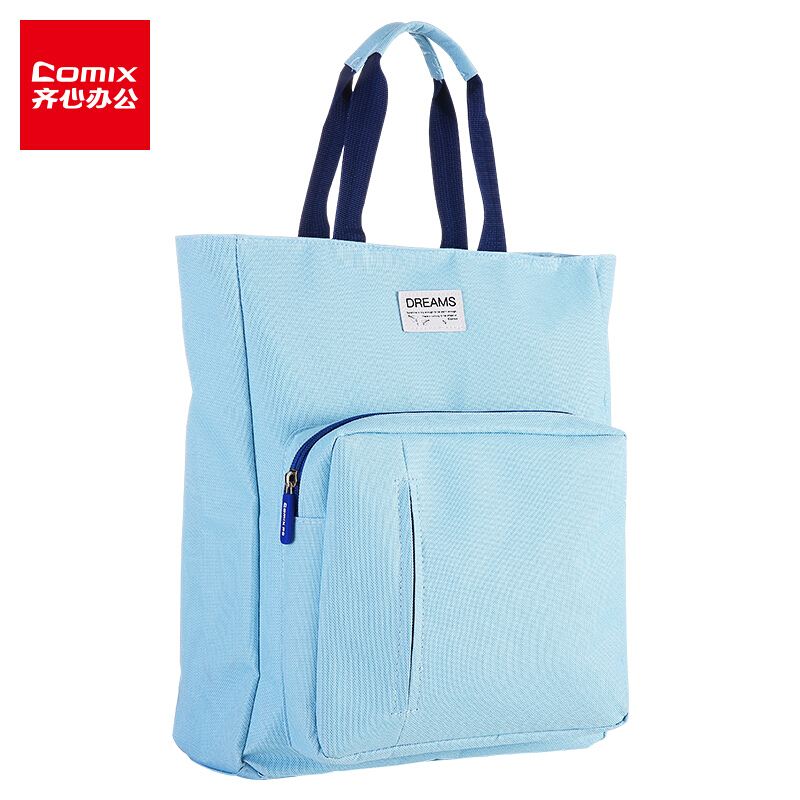 齐心(Comix) A4手提资料袋学生 分类文件袋 A4手提双层拉链袋防水 A3555 浅蓝色