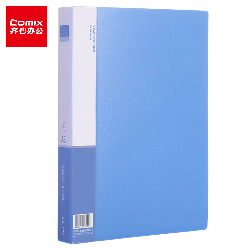 齐心(Comix)A4/60页资料册/插袋文件册/活页文件夹/文件收纳袋 办公用品 蓝色EA2006