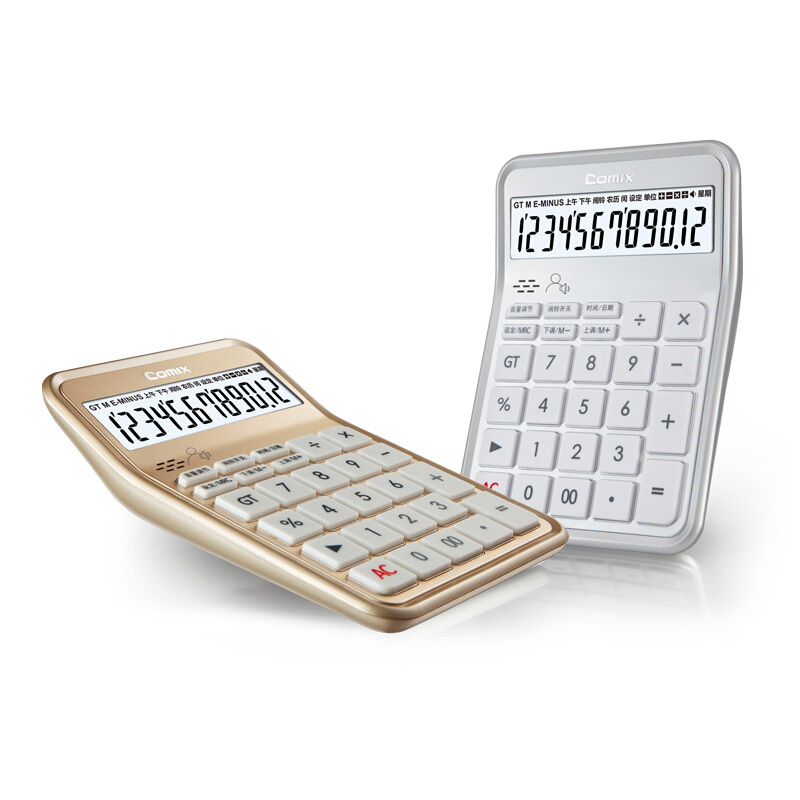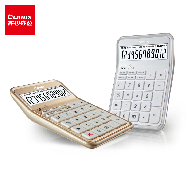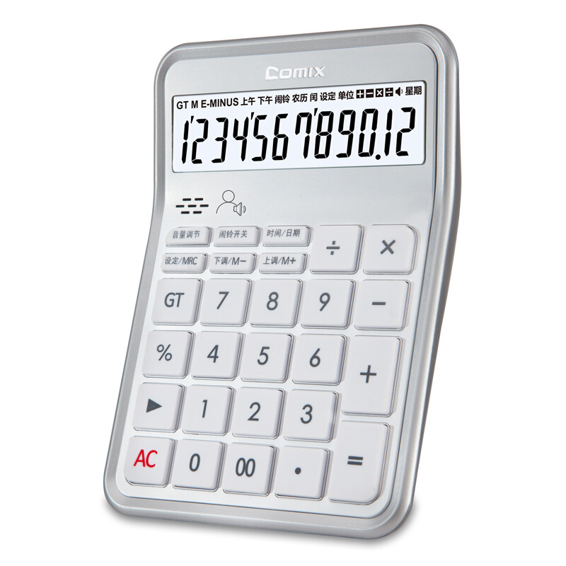 齐心(Comix) 12位桌面语音计算器 爱尚系列C-89典雅银