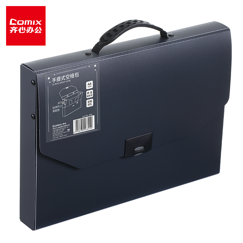 齐心(Comix)A4大容量会议包资料包 事务包 文件包 空格风琴包 试卷包 杂志包 收纳大容量票据包 A3191黑