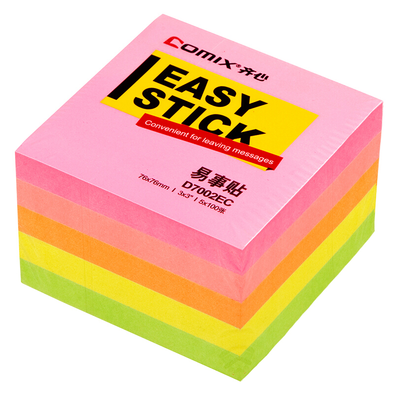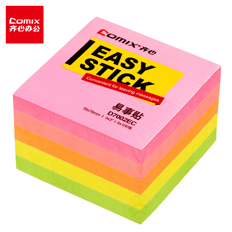 齐心(Comix)5本配色装荧光纸易事贴/便利贴/便签纸/便签本(76x76mm)100张/本 办公文具 D7002EC