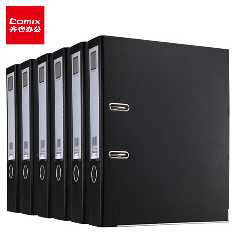 齐心(COMIX)PVC3寸加厚型欧式快劳夹 文件夹 PP快劳夹 A4文件夹带孔资料夹 两孔活页夹 黑色 6个装 A7076