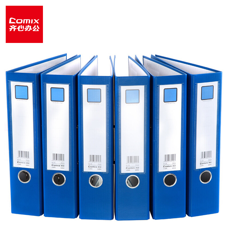 齐心(COMIX) A4文件夹 3寸加厚型欧式快劳夹 蓝色 6个装 A7076