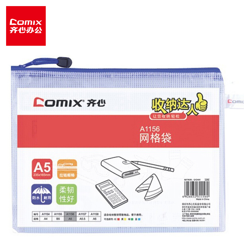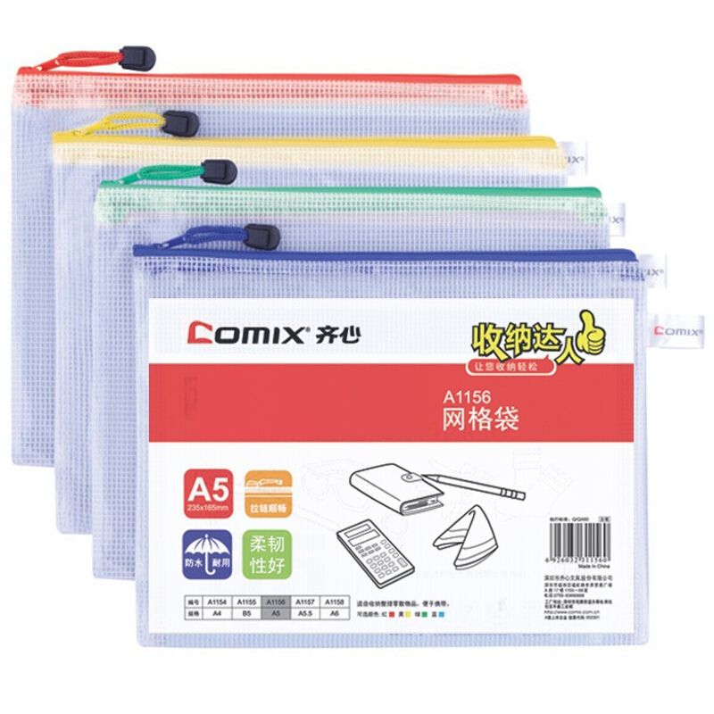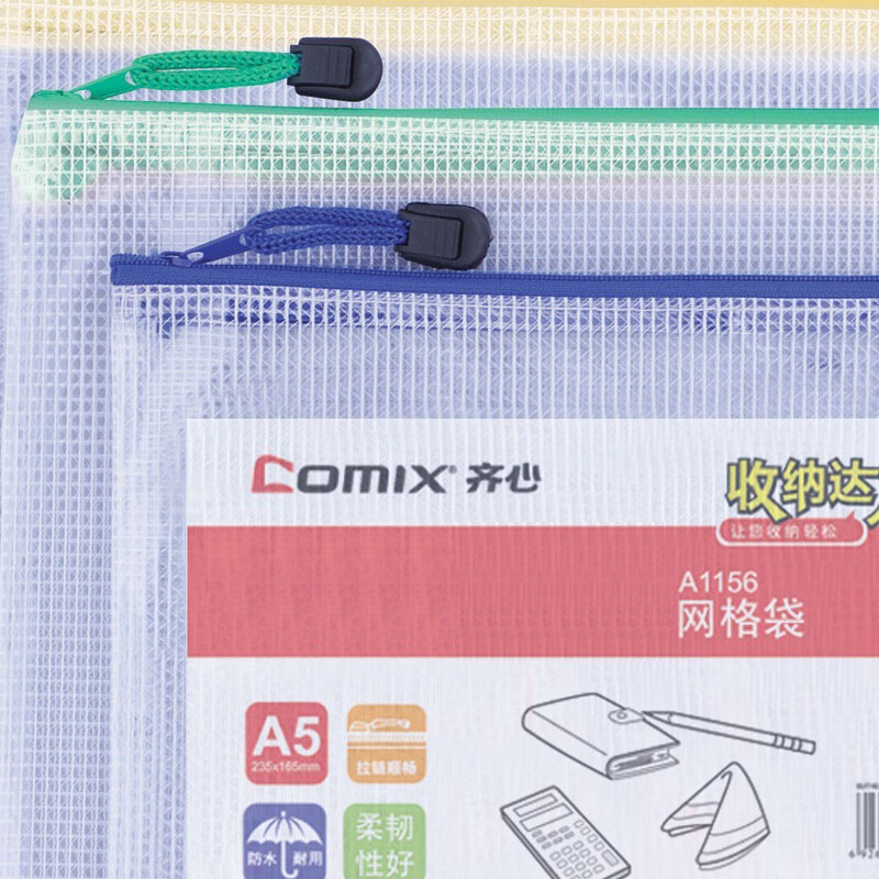 齐心(Comix) A1156 A5 PVC防潮网格拉链袋/文件袋/资料袋