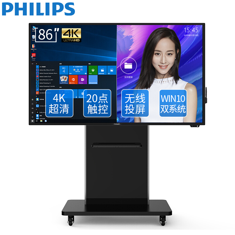 飞利浦(PHILIPS)会议平板86英寸超薄大屏电视电脑触摸屏视频办公教学一体机电子白板 86BDL3001T