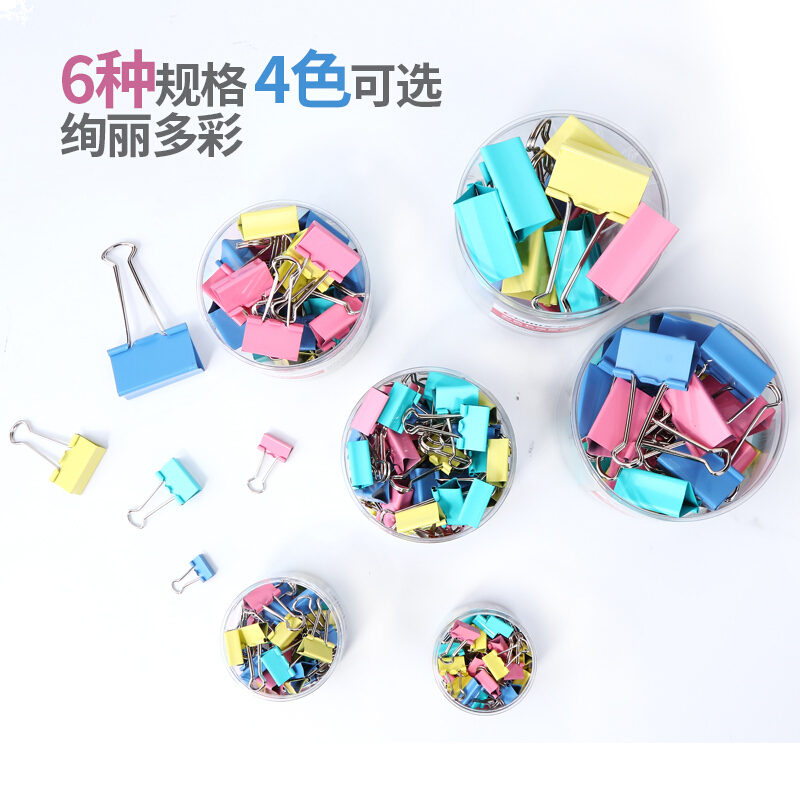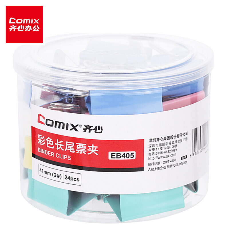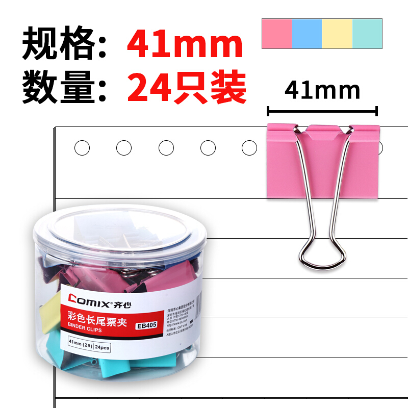 齐心(Comix)彩色长尾夹票夹 41mm金属燕尾夹票据夹子大号 24只/筒 办公用品EB405
