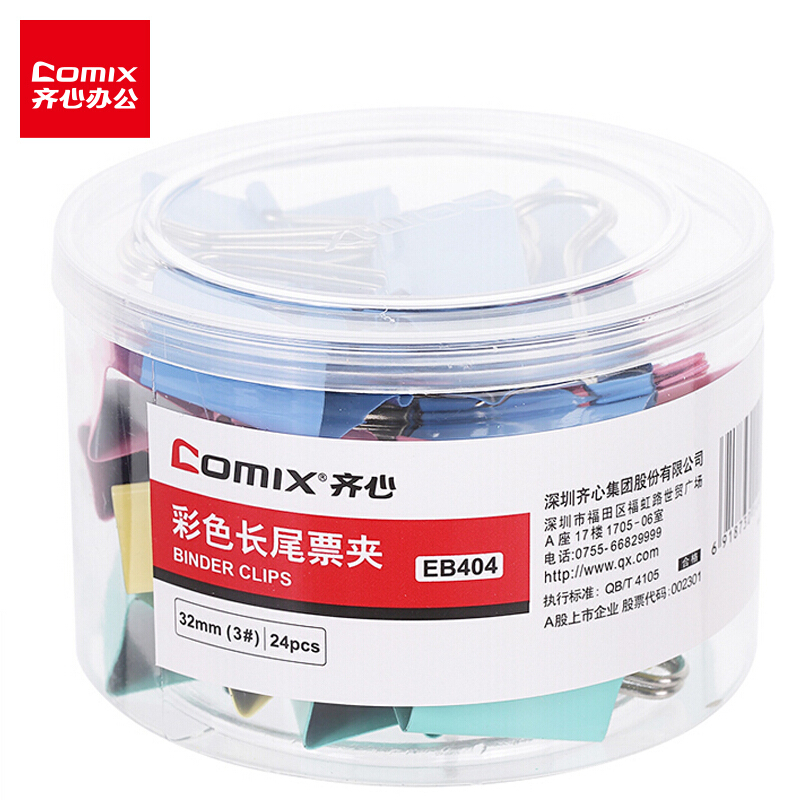齐心(Comix)彩色长尾夹票夹 32mm金属燕尾夹票据夹子中号 24只/筒 办公用品EB404