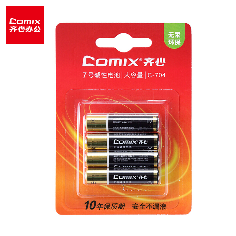 齐心(Comix) 7号 4粒装 安全碱性电池办公用品 C-704
