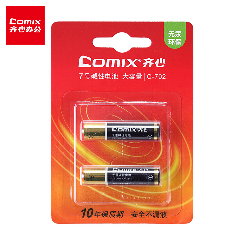 齐心(Comix) 7号 2粒装 安全碱性电池办公用品 C-702