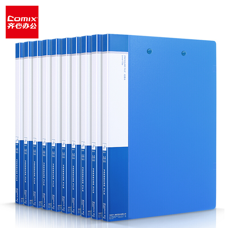 齐心(Comix)10个装 A4双强力夹/文件夹/资料夹/试卷夹/诗朗诵签约夹/档案夹/资料夹子/办公用品 EA63 蓝色