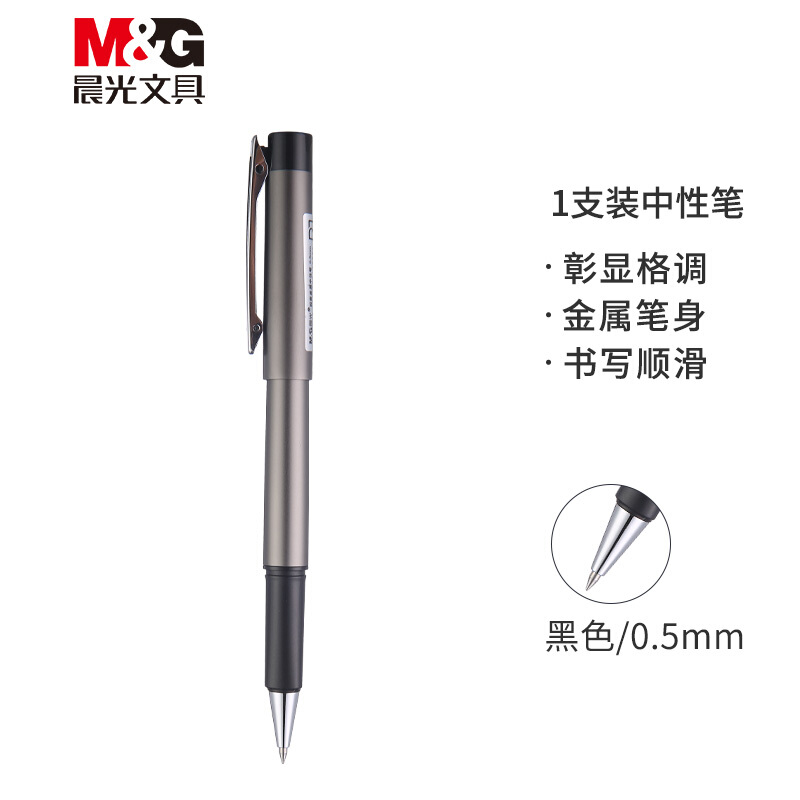 晨光(M&G)文具黑色0.5mm金属子弹头中性笔 商务办公签字笔 锐客系列水笔 单支装AGPV9801