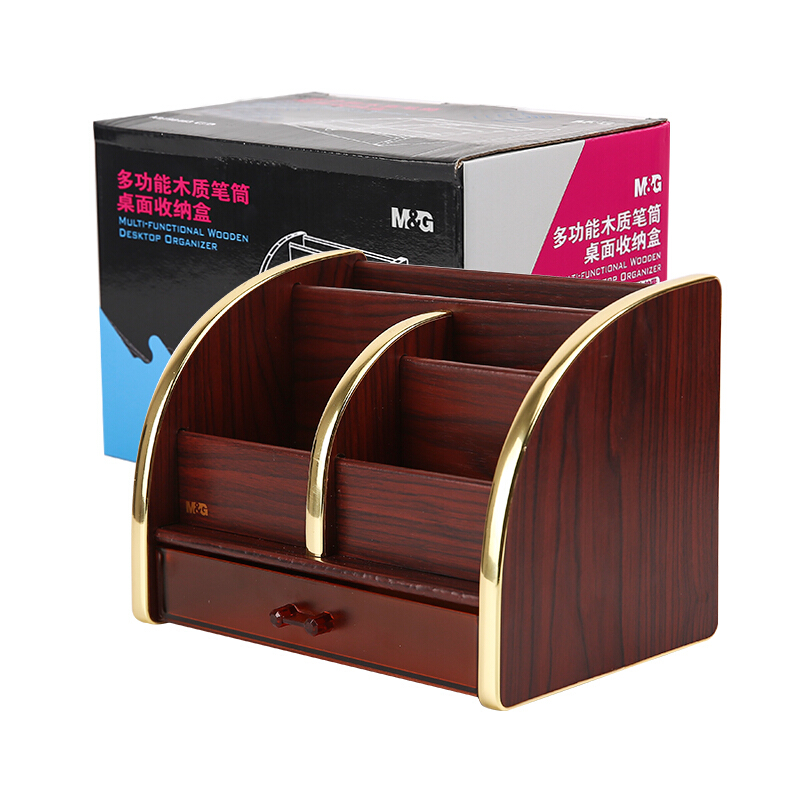 晨光(M&G)文具大号多功能木质笔筒 桌面抽屉收纳座木纹收纳柜 单个装ABT98463