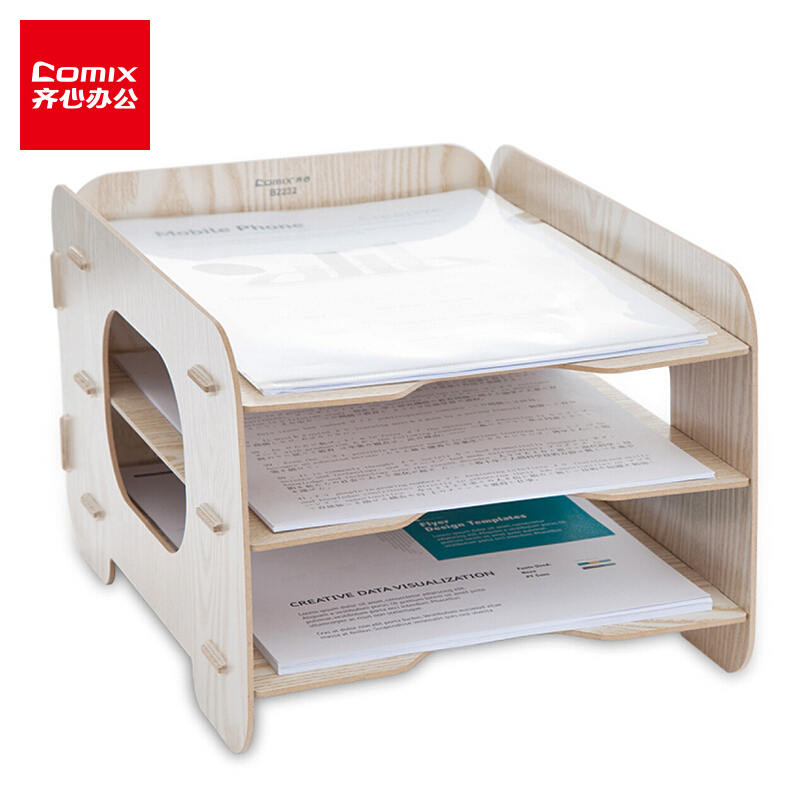 齐心(Comix ) B2232 木质创意组合文件盘/文件座 办公文具